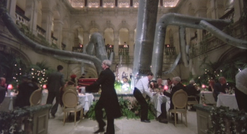 [Laughs] Not too much sparkle! We thought about that right at the beginning, it would be a gray world, but certain things did evolve, like Sam's mom, that was one area where we could just really splash some color. There was also the shopping mall at the end; that was an attempt again to have a lot of fluorescence, colors. But that was about one of the only spots where it worked. What sets were built vs. those that were found locations? Mother's room, that was a location. Mother's bathroom was a build. The Ministry offices, that was a big build, at Lee International. Terry and I actually went to locations [looking] for that but everywhere we looked we couldn't find it. We were basically looking in France because the apartment building where Sam lives, the exteriors for that, were shot in Marne la Vallée, that sort of post-modernistic block.