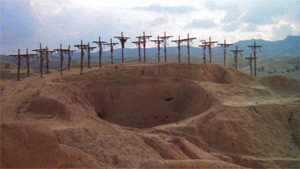 And so it's like the crucifixion, we went out there and Roger Christian and I we went out to Matmata. Terry is so excited and so he's convinced the crucifixion scene is going to be out there. So rather than waste time we'll split up, we'll go in two separate areas. He gets in a car and goes roaring off that way, Roger and I go this way. We find this spot that's fucking great; it's got everything you want, not only this beautiful ridge but there's a range of mountains behind it, the sun will be at the right angles for doing everything, and in front of the hill, on the front part of that there's like this huge opening with, it's like golgothic it should really be, it's like an Acropolis there, so you've got all that working for you, and the sun will be perfect and the mountains, everything would be perfect. And so we come back and Terry I can see has not found what he's wanted, he's disappointed, and we decided we've got to be really careful how we present this. So I go, 'Okay, we found something that might work, we're not sure.' We were walking on eggshells. We go out to this thing and say, 'Well, what do you think?' Terry said, 'Hhmmm, yeah ... Oh! Look at that over there!' And it's in the wrong place! And that's where we shot the fucking thing, we shot the crucifixion in the wrong fucking place. Aggh!!!