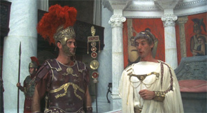 It's this idea that the Romans were determined to put order in this place no matter how chaotic this Jewish city was. And this building going on, and it's really, we did all this stuff, it's the problem of doing it all and designing it and building it and not spending that money elsewhere, and then the ceiling is this incredible ceiling which cost a fortune to do, and then Terry shoots it like a television series boom boom boom like that. Straight on and flat. Now, it's a brilliantly funny scene, you don't need the other stuff. Except that if we'd decided at pre-production meetings and decided to do all that other stuff and go along with it and then not use it, makes me crazy. I probably have the same effect. No, I don't actually on designers on my films because I don't waste anything; if we've spent the time doing it I'm going to get that fucking stuff on film somehow!