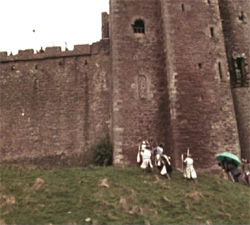 So how it did come to pass that the two of you ended up directing HOLY GRAIL? Was it, from the start you wanted to direct? Yes, basically yeah. 'Cause Ian had done AND NOW FOR SOMETHING COMPLETELY DIFFERENT, and that was the one I think we started pushing even more to be directors. We were really around Ian, Terry and I really had really got him surrounded on that one, so when it came a chance here's the money to make a Python film, we just decided we wanted to do it, we were the ambitious directors, and the others went along with it. Did you think you could both be co-directors? Yeah we did. That was it but Terry and I tended to agree on most things, until we actually started working together and then we discovered we didn't agree quite as totally. And we both had a very similar view of the whole thing, we knew what the look we wanted, all of those things. The real difference came in that I've got a better eye than Terry, is what it's about, I'm better at those things, and he's better at other things. I've got a better eye and ultimately that's how we ended up working it. So we split; I ended up being at the camera, and he worked with the guys, 'cause I having been in my little garret all those years my social skills were not as highly developed as they are now! The idea of out there slogging our guts out and trying to get them to do what was needed for the sake of, 'cause again, John and Graham didn't particularly like it, Eric was all right, they didn't like all this cumbersome stuff. I mean they just want to go out and do the funny lines; that's a bit extreme but it was kind of like that.
