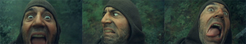 So of course when Terry gets in there with the camera and tries to see the angle he can't do it, so now he's got to dig a hole in the ground to get the camera where it belonged. It's spatial relationships, and ... I don't know. [laughs] It's awful, you know. That's why I just can't get involved directing the group. This stuff is too important to me to just take it easy. And Terry's more lax, lax in a strange way, it's less important to him. John is very happy, he didn't want to wear any beards in the films, it's like that, so he just puts on the skirt and that's it and he's happy. And it goes on and I felt, that's one of the things, with me being Jailer and some of these other characters, it was a way of getting texture to the movie, so I cover myself with mud, I do anything to try and build up a sense of reality. Yeah, build up this real sense of reality and a world going on around it.