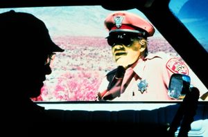 Gilliam: Christina had to do three different days with us. She's an amazing actress. I don't know exactly what's going on inside of her, but she somehow lets you see the stuff! And to play the inner self, on drugs, the state she plays is really good because it's not an obvious drug thing. She's just a very lost girl. That could be mistaken for the religious fervor her character has. Gilliam: What you think more about is the fact that she's this real innocent creature that this monster Gonzo has got his claws into. At that moment they are people in the audience who think we're talking pedophilia here, and that of course is the word you can't use these days, so there's a walkout at that point as well. I think the line, 'Shooting the nipples off a 10-foot bull dyke,' we lost a few people at that point! The New Puritans, the ones who want to tell us exactly how we should or shouldn't behave and think, are very offended by language. I think the one word we don't use is 'nigger,' because Hunter never used that word; besides, Quentin Tarantino's got the copyright on that! And Katherine Helmond is back as a hotel reservations clerk? Gilliam: Yeah. And once again I stretched her face! [In BRAZIL, Helmond played a woman who submits to outrageously aggressive plastic surgery.] This time is really, really bad what I've done to her! I mean, there are few people that would put up with what I've done to Katherine! But then all the cast, all the people who did their little stint were quite wondrous. Gary Busey is fantastic, his scene is very strange and a good scene, it's the intermission in the middle of the movie. He plays the highway patrolman. He's really good.