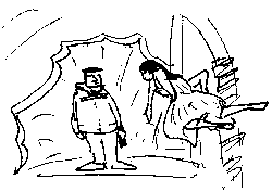 Something was bothering me just about the physical location of the Dining Room, where the Baron and Vulcan are supposed to be sitting around a table with goblets of wine; it wasn't quite right. So something hit me that, rather than coughing out of goblets of wine behaving in a really butch manner, Vulcan is now in a room that's like an 18th century salon, and it's very delicate. This is partly because of this location we were sitting at. We changed it around, having him drink out of these little demitasse cups. Here's this rough, crude, brutish man having to behave in an 18th century civilized manner. It starts getting better and more interesting. And that's the result of a physical place.