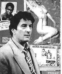 Near the end of the shoot, the dance club Palladium as brash a place as one could hope for has been festooned with banners and posters featuring the smiling visage of Harry Fabian (announcing "The Return of People's Boxing to New York!"), surrounding a beckoning boxing ring in the center. The scene shows the preparations underway for the six-fight card that evening. Boxes of boxing gloves ("free to the first 200 customers!") are stacked around the aisles, creating a maze. Jack Warden (as Al Grossman, a former boxer and righthand man to Fabian) gets into an argument with an imposing but gangly bouncer; De Niro then rushes in to break up the scuffle, while the combatants roll off-camera. From far off, the emotions that spark this fight seem minimalist, almost ridiculous. A few caustic remarks, and a 70-year-old man slams a young punk taller than he to the ground. Watching on the monitor and seeing the picture framed close-up on Warden, however, one can see the emotions swell up, ready to burst. It reminds one of a typical New York Post story about a shooting involving two people who just happen to look at each other the wrong way a sign of the coarseness of city life, where everything is unpredictable and too forceful to overcome. Life-threatening hazards are actually instruments of Fate. "I think it's brash in attitude," Winkler says of the film. "I think we have the city [and] what it represents intruding constantly. The language is brash, the violence, the passion it's all a part of New York today. There's either an ambulance coming at you or a cab'll run you over, or somebody holds you up. "I attacked this whole thing as a kid out of film school. It's all brand new. And they didn't fire me, so I'm happy!" Perhaps the happiest on the shoot was Price, who with a minimum of effort and a commendable degree of patience saw his work finally given the treatment it deserved. "They didn't change anything, just little tiny stuff here and there. If you want to call that reverence, you know, he didn't deviate from it. I mean, there's nothing religious about it; it was basically the way it was eight years ago." Well, did the writer have the urge to rework the material in any way, after such a long gestation period? "What, are you kidding? What kind of question is that? No, I really wanted to do a million fucking rewrites!" |